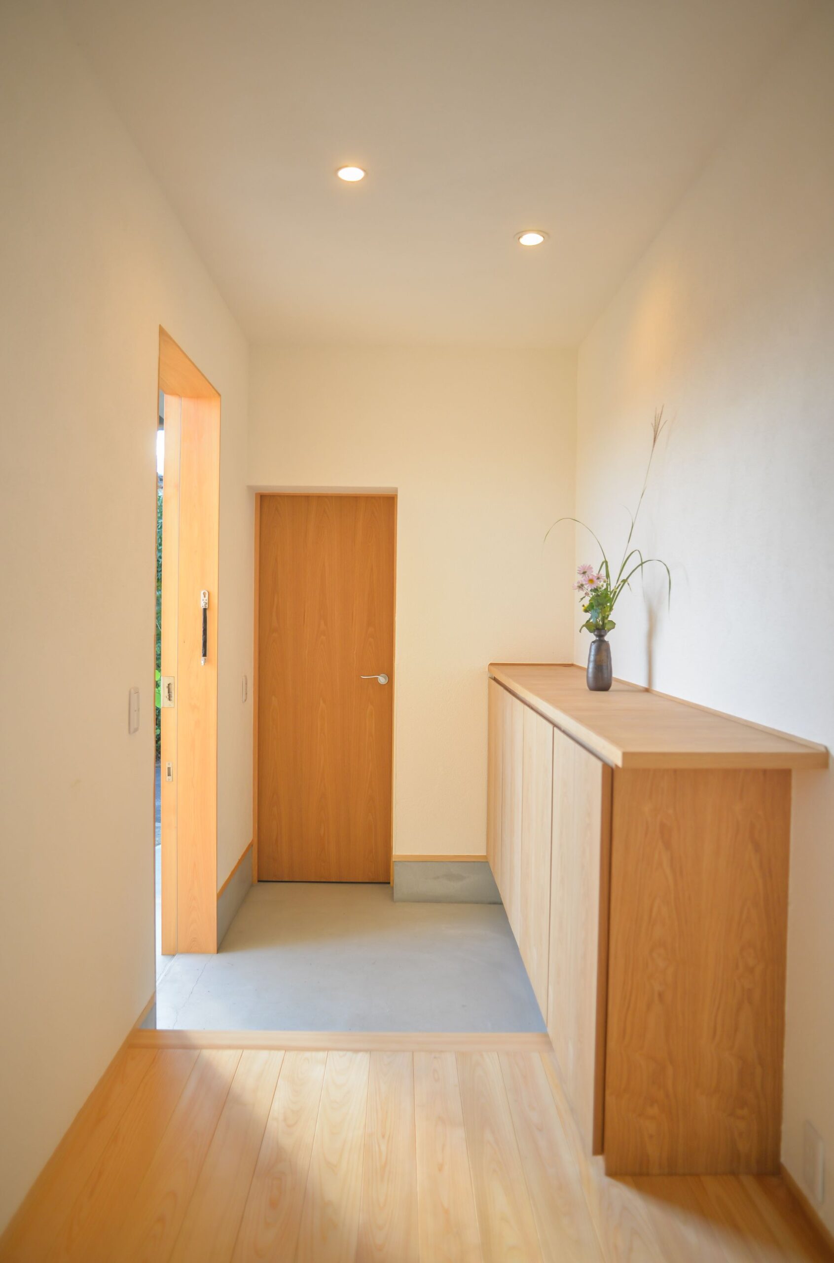 南側敷地境界沿いには、常盤万作の生垣を植えた。数年後、その生垣が成長し、南側の住宅群の屋根を隠し、青空と山々のスカイラインを切り取ることに期待している。