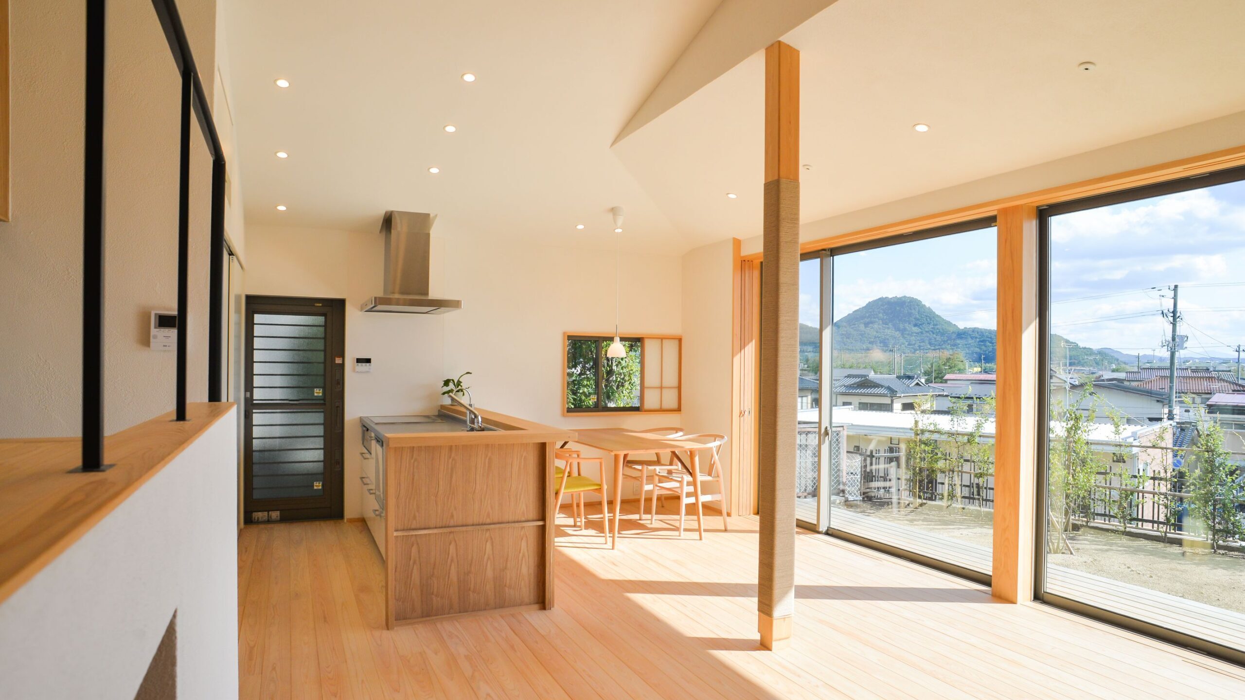 南側の開口を開放すると、南東には信夫山、南西は遠くに吾妻連峰を望むことができる。