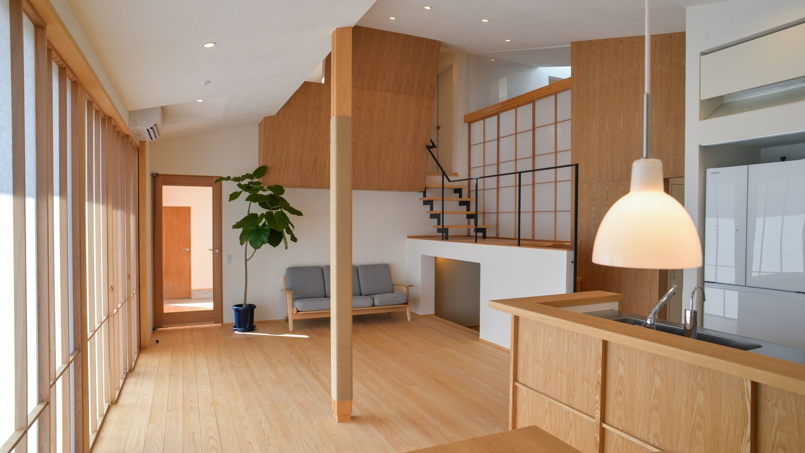 内部空間が一つとなることで、家族の気配を感じとれる豊かな空間を目指した。